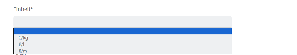 * Bei der Angebotsform Lebensmittel und Meterware ist zusätzlich zu den in Einzelartikel angegebenen Feldern das Feld Einheit auszufüllen, auf das sich die angegeben Preise beziehen.