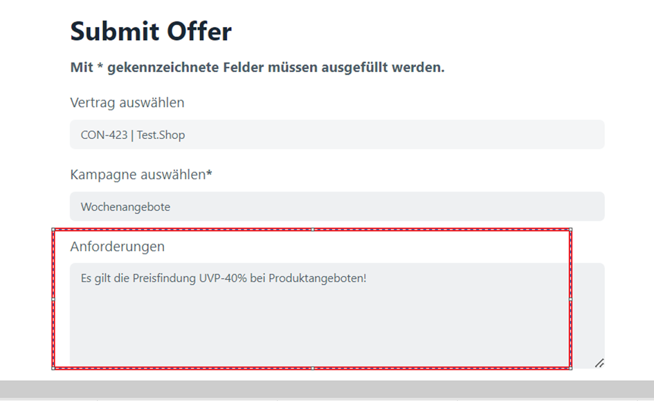 Unter Anforderungen erscheint dann ein Hinweis über die Anforderungen, die Ihr Angebot berücksichtigen muss.