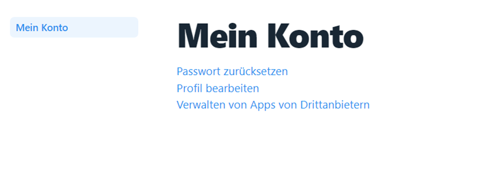Auswahl „Mein Konto“ ermöglicht folgende Einstellungen: