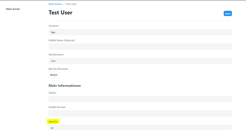 „Profil bearbeiten“ ermöglicht das Aktualisieren der persönlichen Daten. Auch die Auswahl der bevorzugten Sprache ist hier möglich: „de“ steht dabei für Deutsch, „en“ für Englisch.